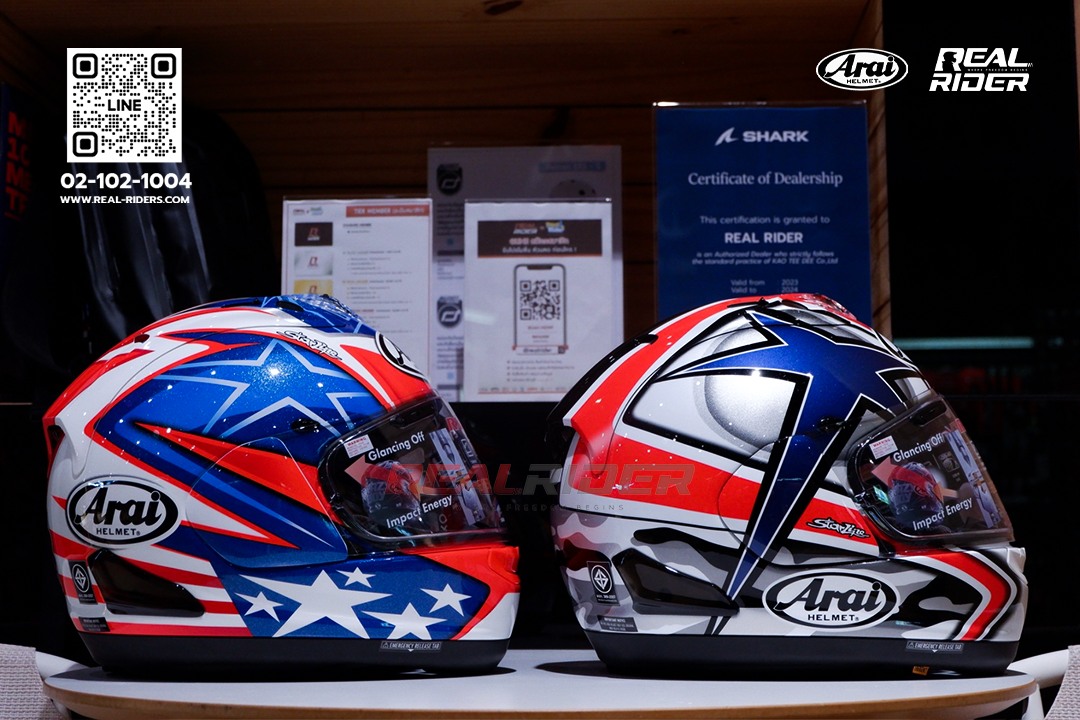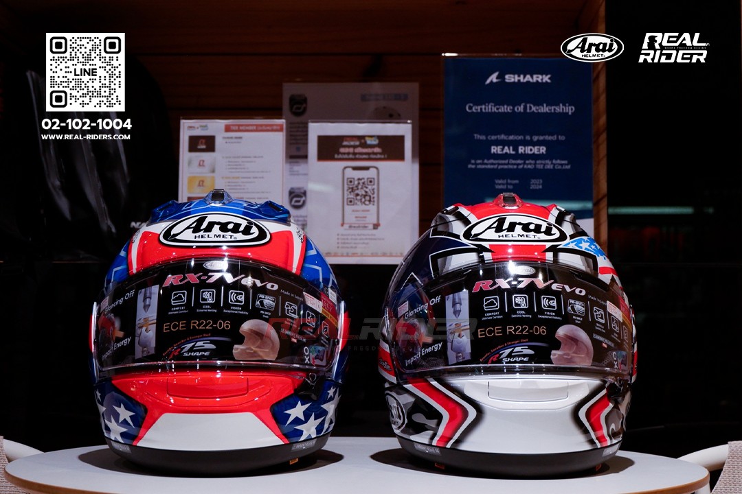 -ตัวล็อคชิลด์ ตัวล็อคชิลด์ด้านข้างมีขนาดเล็กลง หมวกรุ่นใหม่นี้ มีลักษณะแบบเดียวกับหมวกรถแข่ง F1 ทำให้การถอดชิลลด์ง่ายกว่าเดิมเยอะ (รุ่นปัจจุบันแฟนอาราอิ รู้ดีว่ามันถอดยาก)
