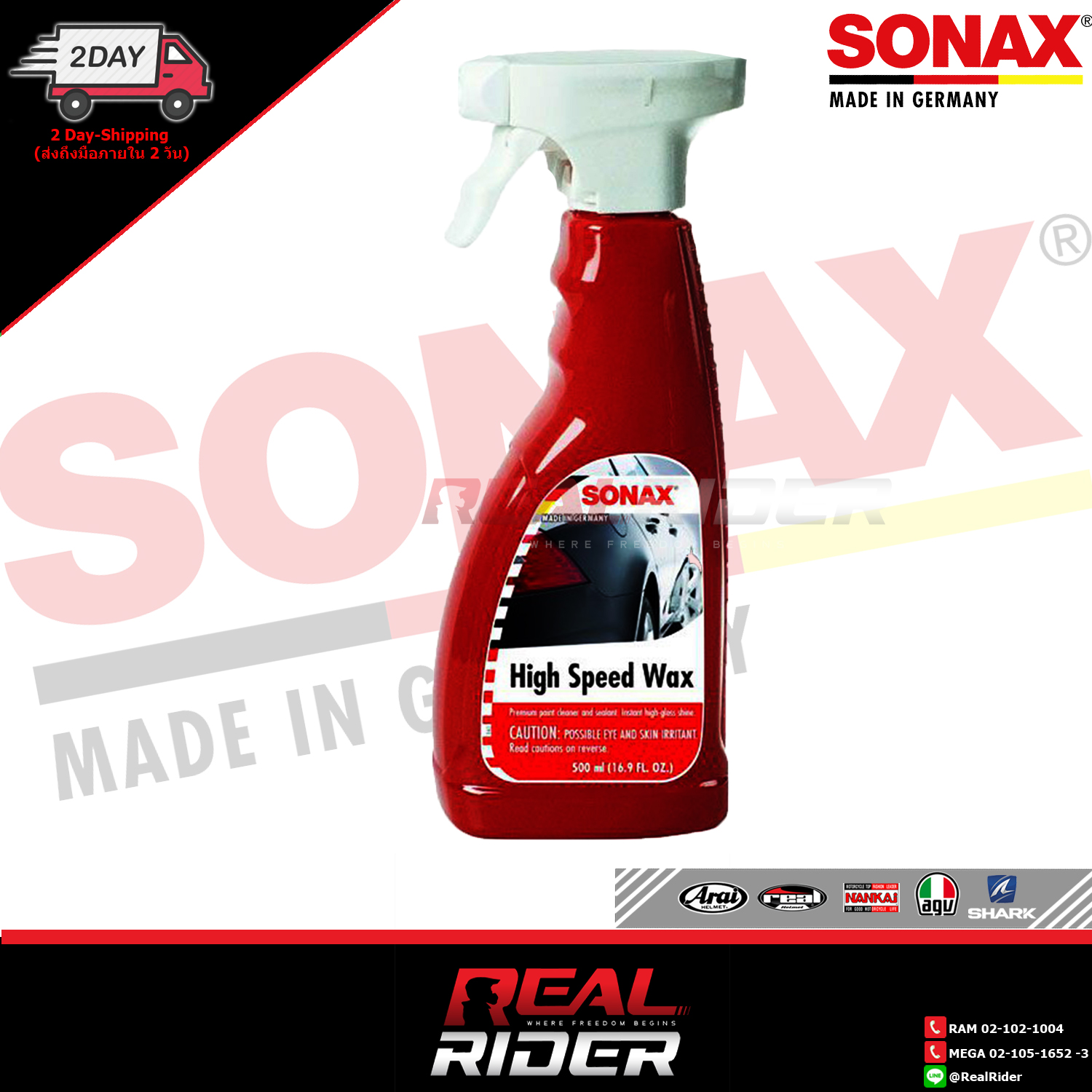 หน้าหลัก สินค้า ซ่อมบำรุง อุปกรณ์ทำความสะอาด น้ำยาเคลือบเงารถและหมวก SONAX GERMANY 500 ml