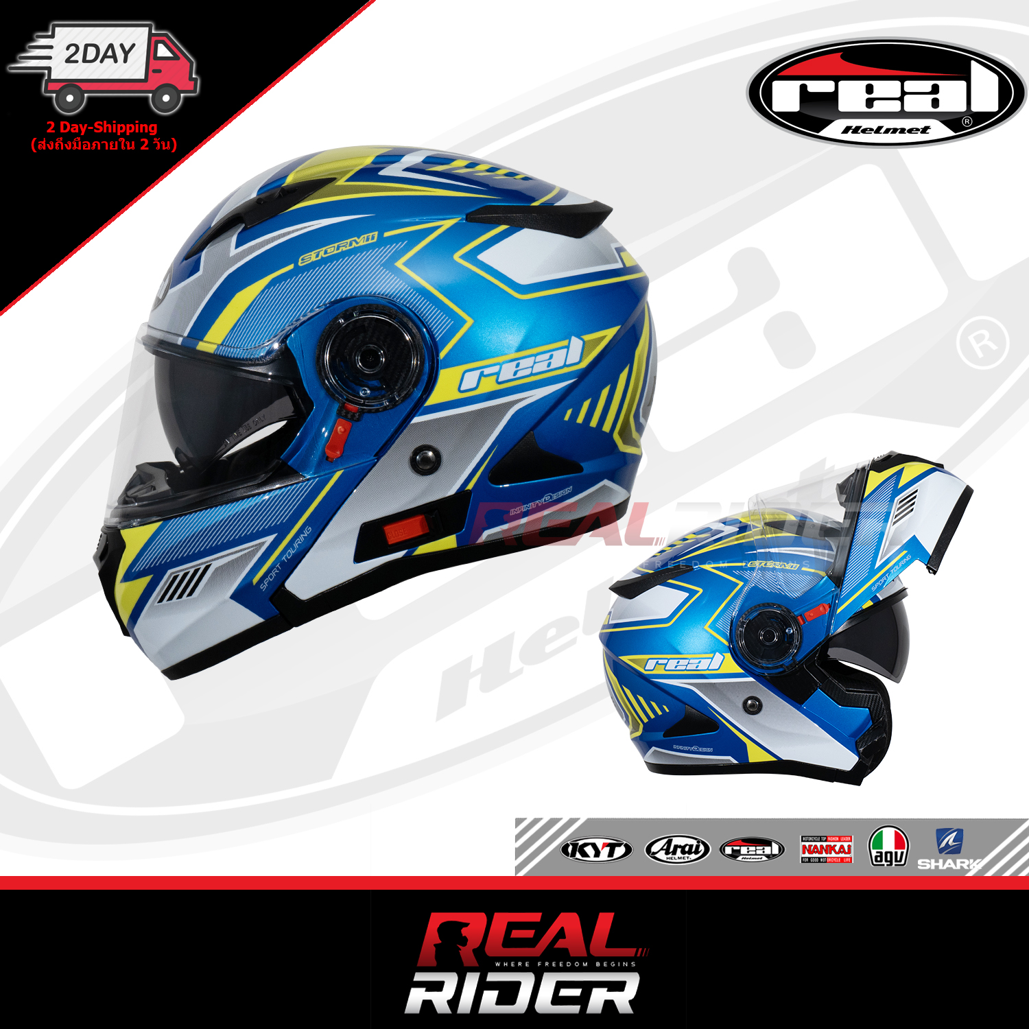 หน้าหลัก สินค้า หมวกกันน็อค REAL Storm Eagle Force (Flip-Up) น้ำเงินเหลือง