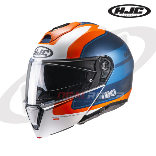 HJC – I90 WASCO ฟ้า-ส้ม (ยกคาง-กระจกสองชั้น)